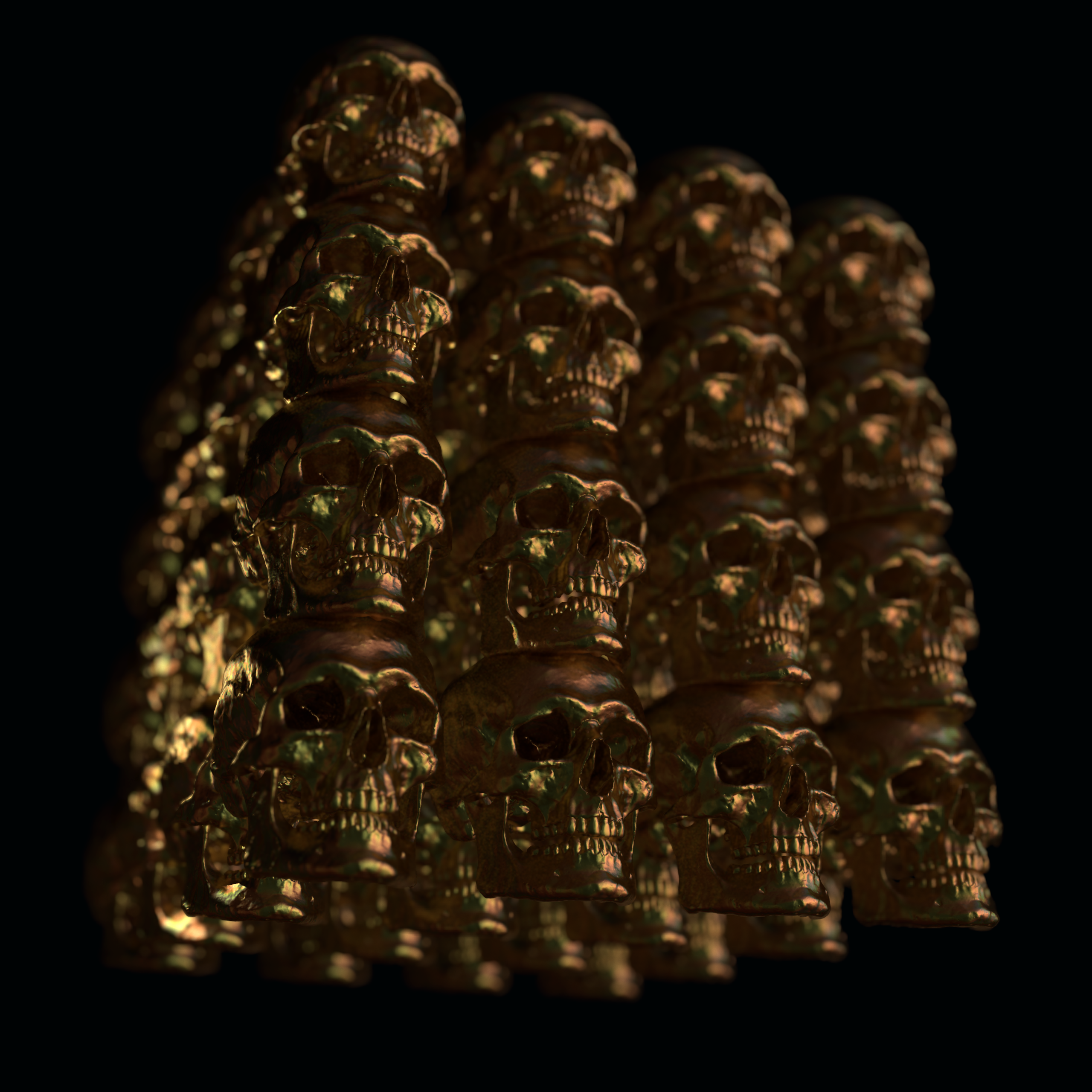 Sixty-Four Golden Skulls – a 3D render by inkydigit…