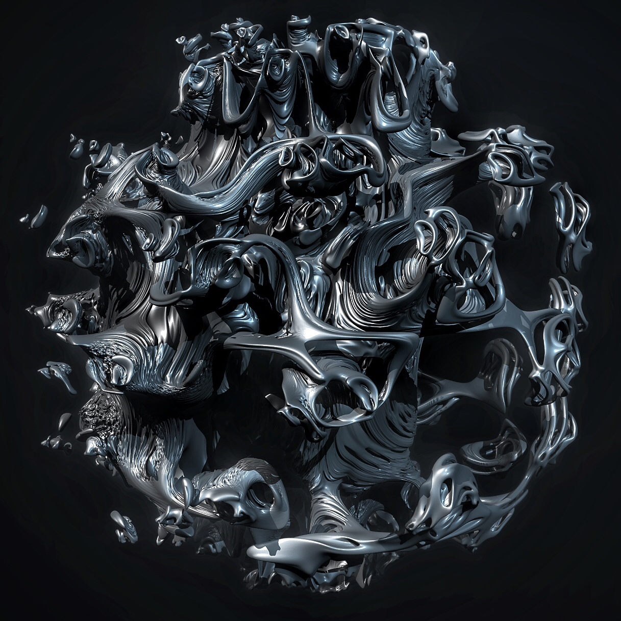 A Mandelbulb, Quaternion and Bristor combination… An exercise in complex shape interaction. Textured and lit to accentuate the elaborate and intricate fluid form!
